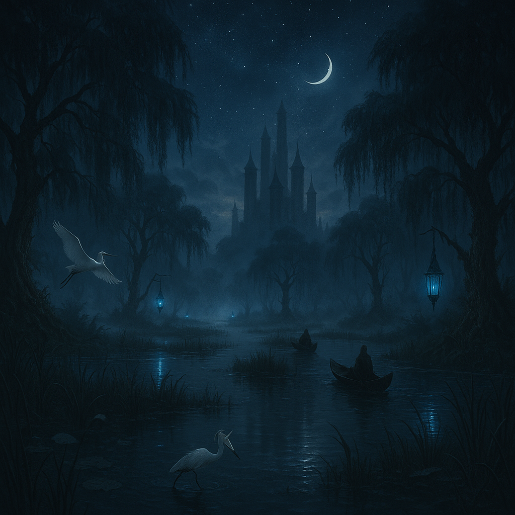 A vast expanse of silvered marshes, blackwater rivers, and moonlit fenlands.